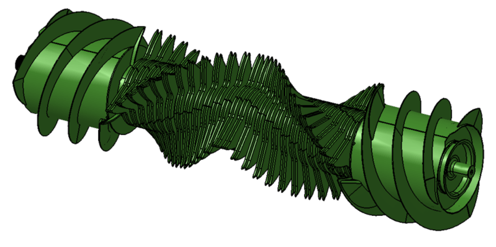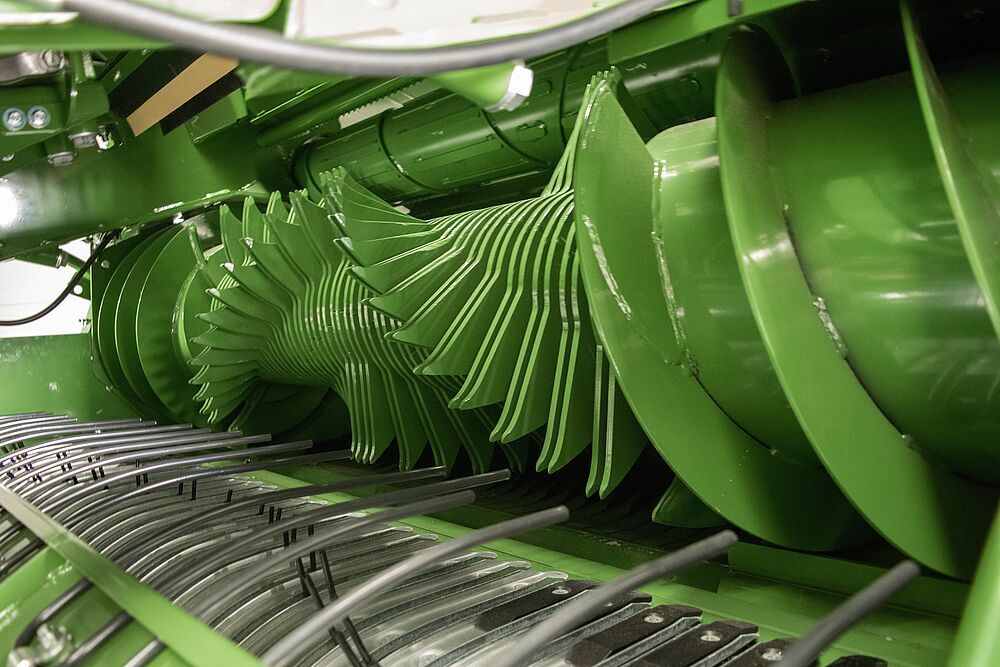 Integrální rotor, který je dle výběru k dispozici s řezacím ústrojím nebo bez něj, nadchne robustní konstrukcí a spolehlivostí. Boční vkládací válce jsou integrované v rotoru, takže počet pohyblivých dílů je i zde podstatně nižší. Díky tomu je snazší čištění stroje i jeho údržba. Výsledkem je potom delší životnost stroje.