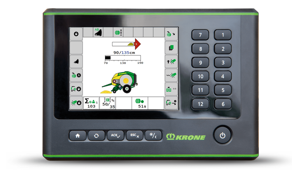 Práce s palubní elektronikou KRONE Komfort je prostě zábava. Zjednodušuje, zlepšuje a urychluje práci. Lis VariPack Plus v sériovém provedení pracuje s ISOBUS a je vybaven funkcí TIM, takže umožňuje různé způsoby ovládání. K dispozici jsou různé ovládací terminály pro různé úkoly.